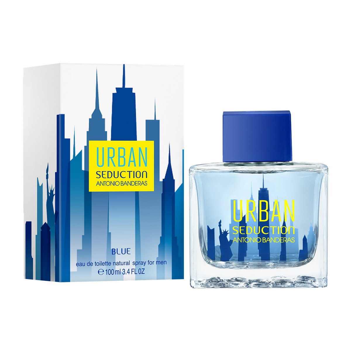 Urban Seduction Blue Men — элегантный, освежающий и бодрящий, как порыв чистого свежего воздуха в атмосфере гигантского мегаполиса, мужской парфюм, выпущенный в 2015 году брендом Antonio Banderas. Новинка входит в очередное трио фланкеров популярного аромата «Urban Seduction», на этот раз посвященное жизни Нью–Йорка. Этот запах для тех, кто привык жить в мегаполисе и кто не мыслит своей жизни вне города. Даже флакон оформлен в духе аромата — за прозрачной передней гранью просматривается нанесенный на заднюю стенку вид города Нью–Йорка. Голубые оттенки флакона сразу настраивают на прохладу содержащегося в нем запаха. А он действительно с первых нот дарит удивительную свежесть — мягкую и невероятно комфортную.