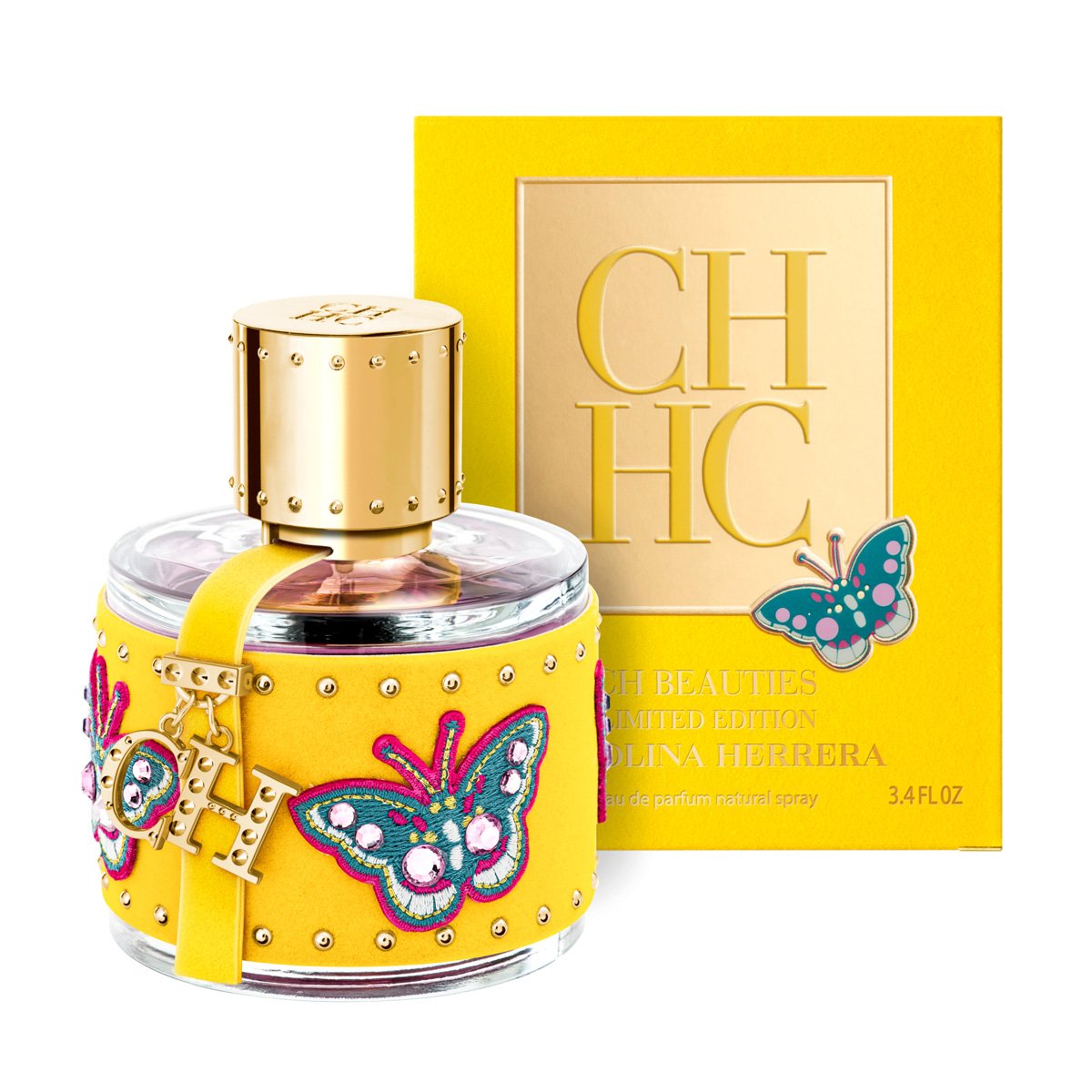 Духи заключены в яркий жизнерадостный флакон, обтянутый желтой бархатистой тканью с вышитыми изображениями бабочек и украшенный желтой лентой с подвеской с логотипом CH.