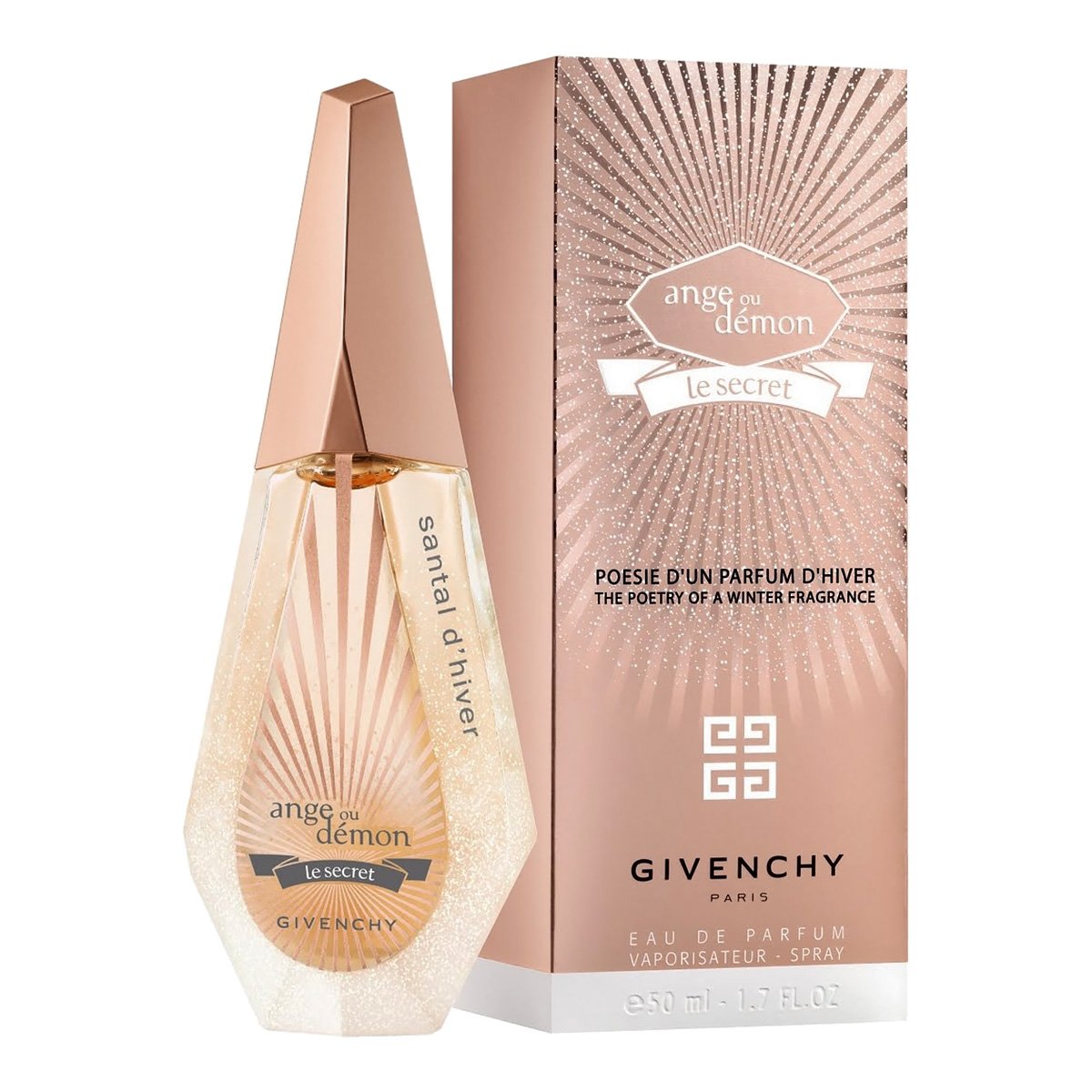 Givenchy Ange ou Etrange Le Secret Poesie d’un Parfum Santal d’Hiver — рождественское издание, пополнившее коллекцию «Поэзия зимних ароматов» знаменитого модного дома Givenchy. Это романтика зимних вечеров, проведенных в уютной гостиной загородного дома. Парфюм рисует новый образ таинственной Незнакомки, представляя ее на фоне заснеженных пейзажей. В камине полыхает огонь, а за окном искрятся покрытые снегом деревья. В этой удивительной атмосфере зимнего вечера есть своя завораживающая магия. Возможно, именно сейчас рождается новая прекрасная сказка.