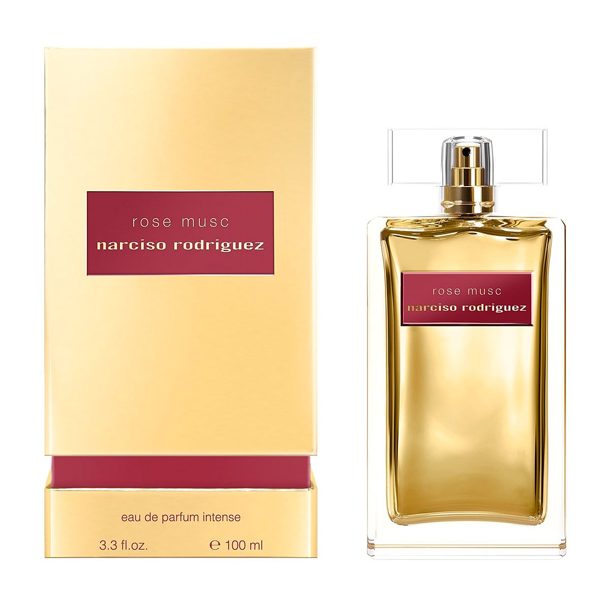 Духи Narciso Rodriguez Rose Musk заключены в характерный для бренда строгий прямоугольный флакон из толстого стекла золотистого цвета.