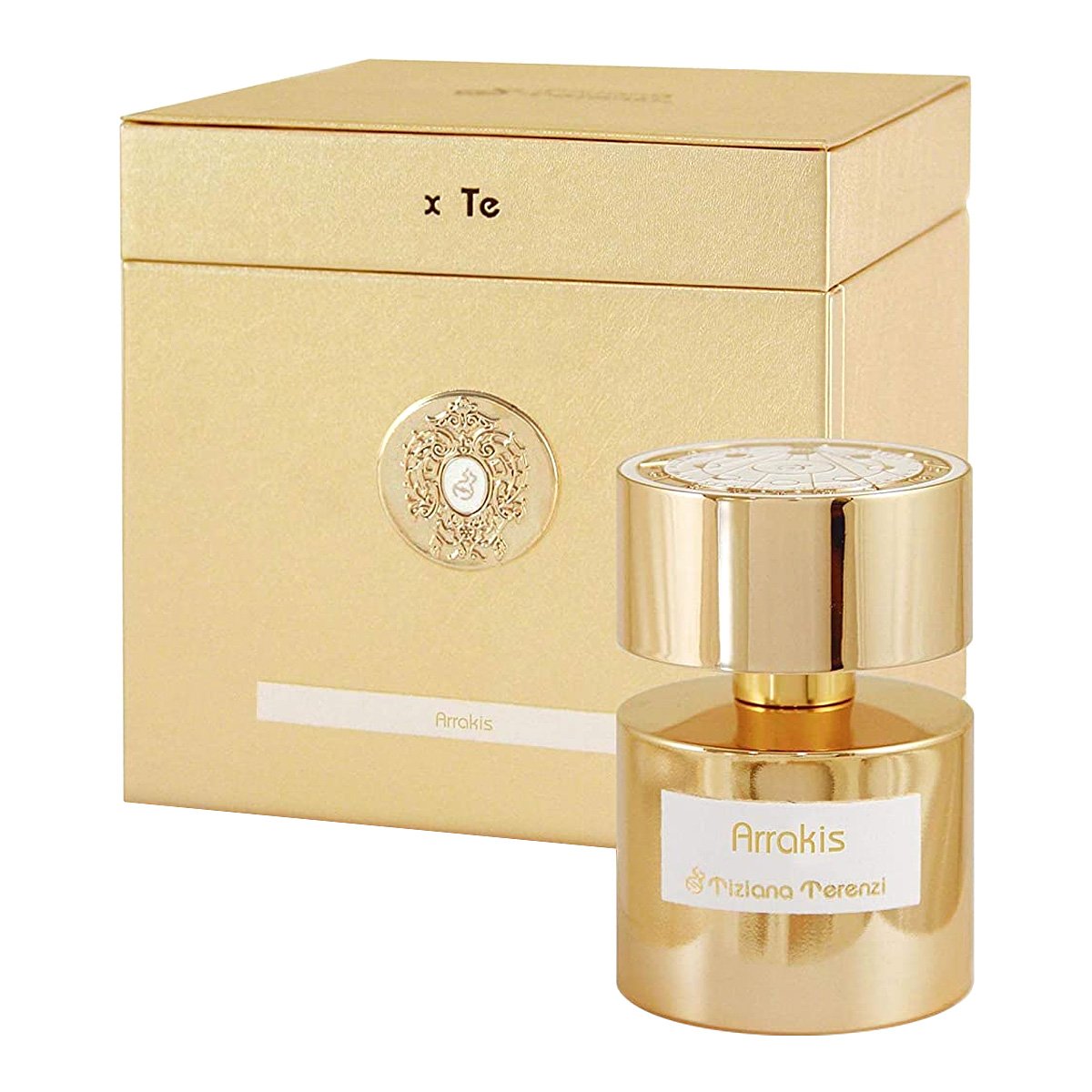 Духи Тициана Терензи Аракис заключены в характерный для бренда золотистый флакон, увенчанный широкой крышкой с картой звездного неба.